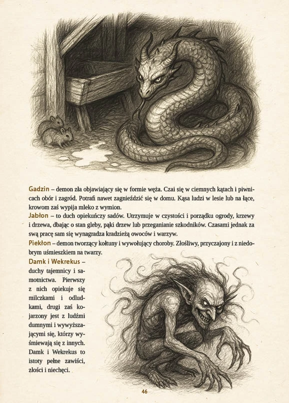 Bestiariusz pomorski w nowej odsłonie. To bogato ilustrowana publikacja prezentująca nadprzyrodzonych bohaterach pomorskich wierzeń i legend. Pojawiające się tu opisy bóstw oraz innych magicznych istot wywodzą się zarówno z przekazów utrwalonych w tradycji ludowej, jak i przetworzonych w tekstach kultury XIX i XX wieku. Album przedstawia panteon bogów dawnych pomorskich Słowian oraz nadnaturalnych opiekunów pomorskich domostw, powietrza, pól, lasów i wód, a także wysłanników krainy mroku.
