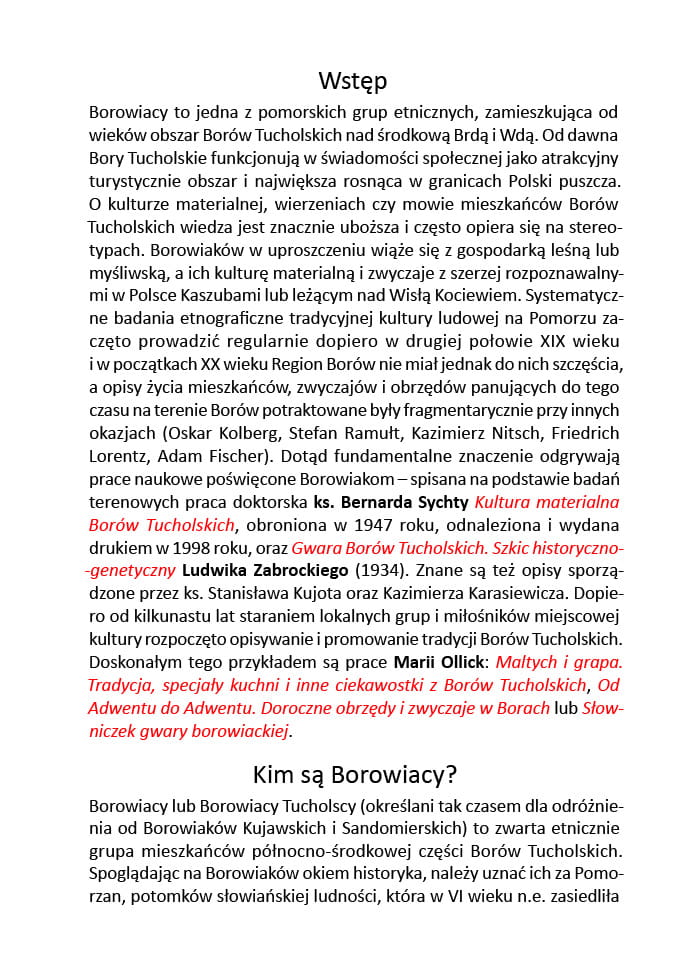 To kolejna pozycja z popularnej serii „ABC”, która w skondensowanej formie prezentuje najważniejsze informacje na temat mieszkańców Borów Tucholskich, ich historię oraz teraźniejszość. Publikacja prezentuje kulturę materialną, dawne wierzenia, a także charakterystyczne elementy mowy Borowiaków.