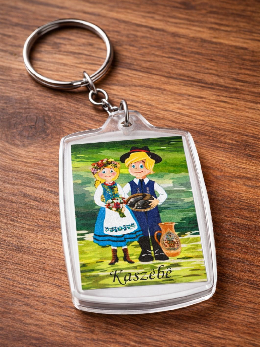 Akrylowy breloczek kaszubski. Projekt inspirowany tradycyjnym świetlicowym strojem kaszubskim. Brelok świetnie przyda się jako ozdoba do kluczy lub jako pamiątka folkowa. Breloczek "para kaszubska" to doskonały pomysł na prezent dla bliskiej osoby, miłośnika podróży, czy kogoś, kto pragnie mieć wyjątkowy symbol kaszubskiej tradycji. Dzięki jemu unikalnemu desingowi, stanie się on doskonałym dodatkiem do kluczy, torebki, czy plecaka.