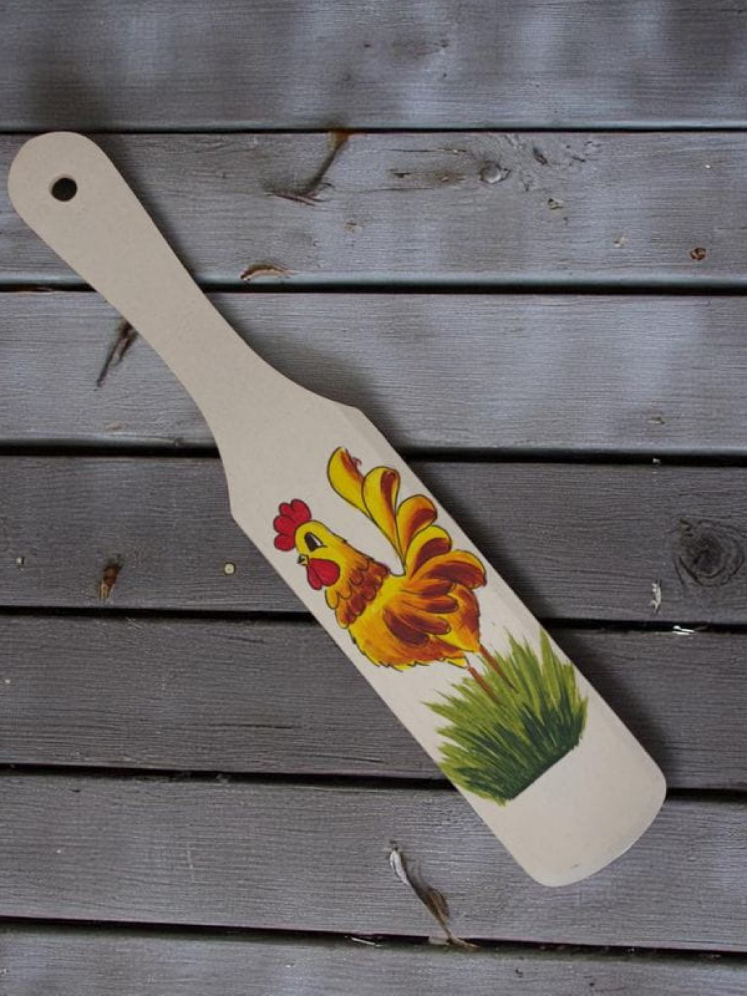 Drewniana łopatka ozdobna przedstawiająca kurkę świąteczno-wielkanocną. Piękna ozdoba Twojej kuchni w klimacie folk - na Święta Wielkanocne i nie tylko.