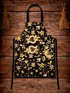 Fartuszek kuchenny z motywem kwiatów kaszubskich, złotnica