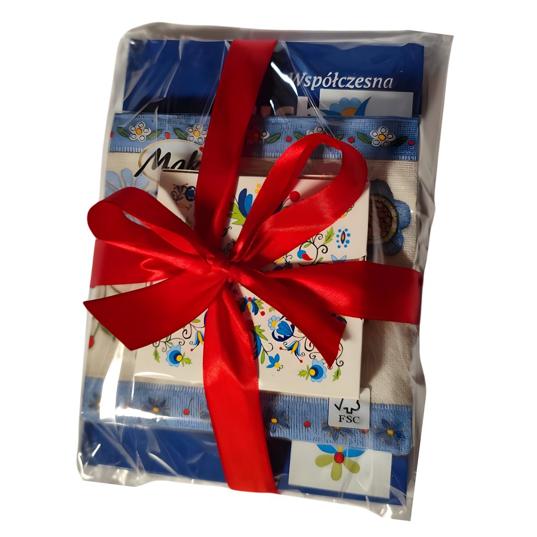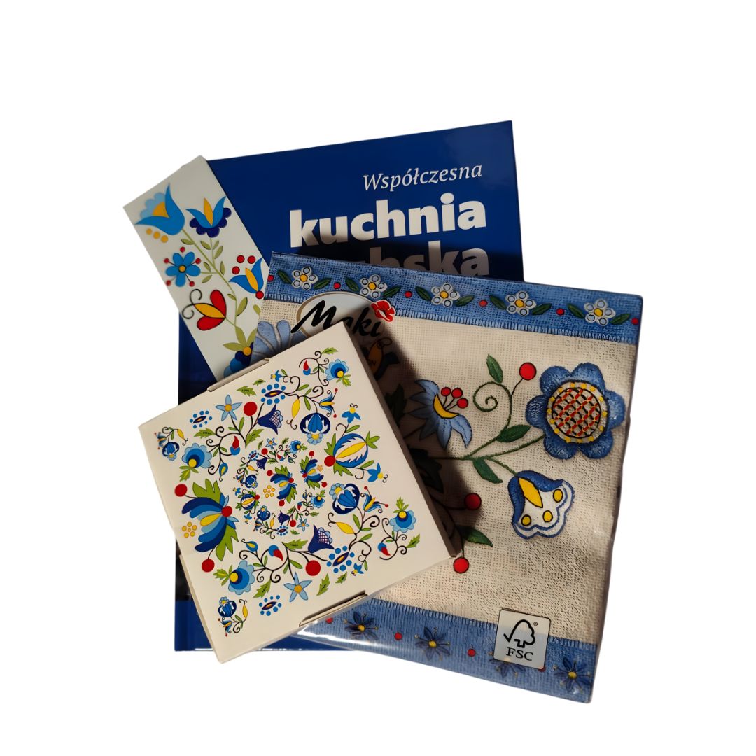 Zestaw „Kuchnia Kaszubska” to idealny prezent dla miłośników gotowania i folkloru. Zawiera książkę kucharską, zakładkę, serwetki i podkładki z motywami haftu kaszubskiego – wszystko pięknie zapakowane i gotowe do wręczenia.