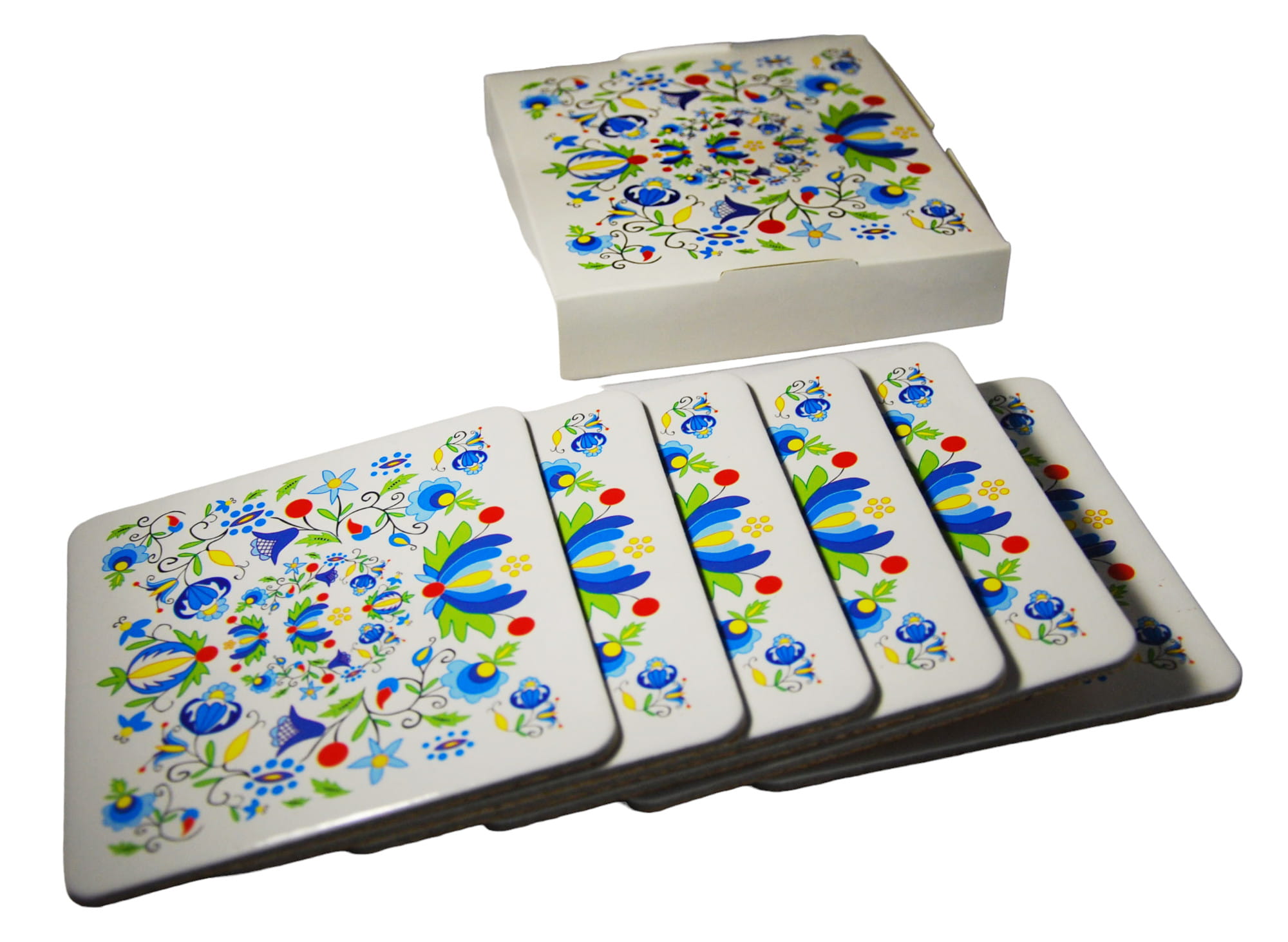 Piękny zestaw podkładek z wzorami haftu kaszubskiego - szkoły żukowskiej. Świetny dodatek do kaszubskich kubków. Piękne wzory z Kaszub podkreślą folkowy charakter Twojego domu. Wykonane z korka oraz tektury. Zapakowane w tekturowe pudełko.