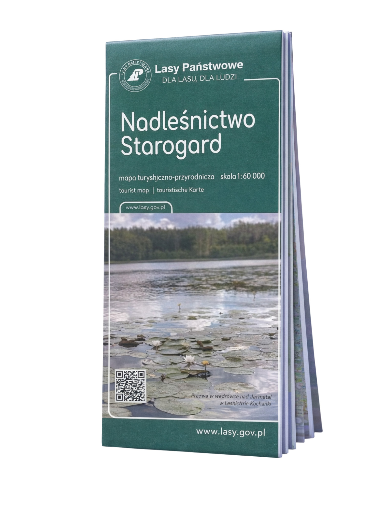 Mapa Nadleśnictwo Starogard - mapa turystyczno-przyrodnicza nadleśnictwa położonego w woj. pomorskim na Kociewiu. Na mapie umieszczono: