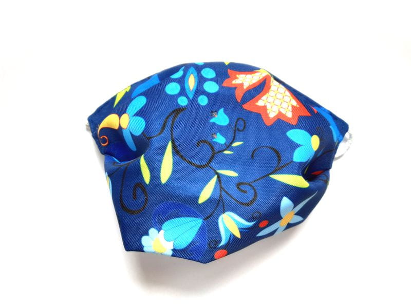 Wygodna maska ochronna wielokrotnego użytku na czas pandemii, zdobiona kaszubskim akcentem. Zewnętrzna warstwa z wzorem kaszubskim wykonana z materiału o gramaturze 160 g. Wewnętrzna część wykonana z podwójnej warstwy fizeliny o gramaturze 40 g. Uniwersalny rozmiar, pasuje do każdej twarzy. Gumka umożliwiająca idealne dopasowanie do twarzy. Prać w temperaturze 60°C