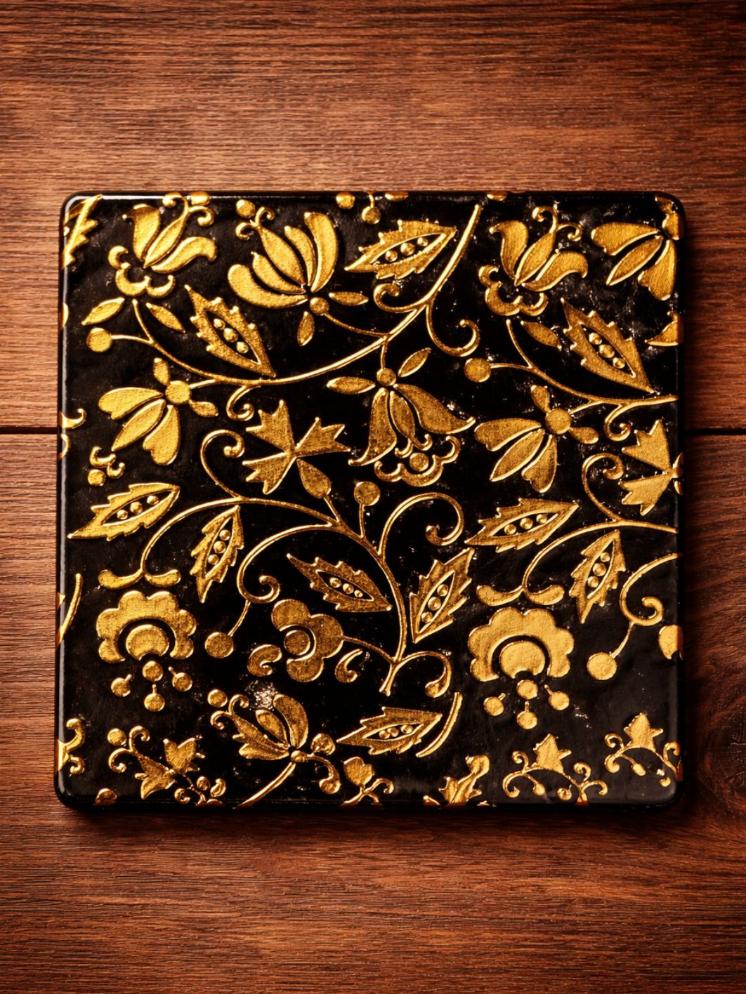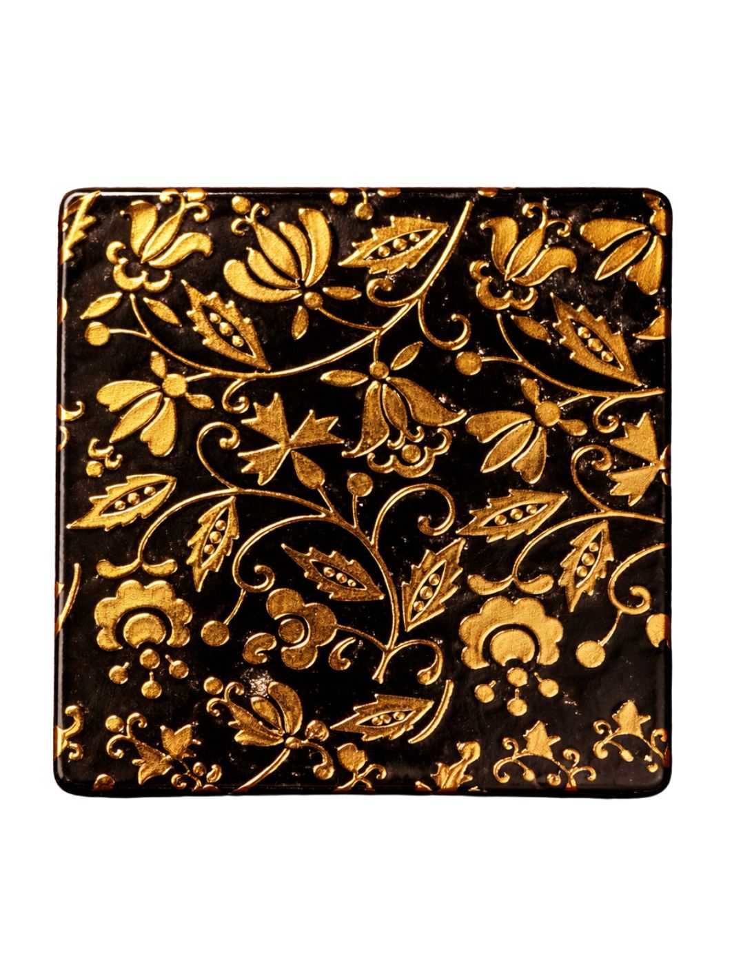 Podkładka ceramiczna pod kubek - złotnica na czarnym tle