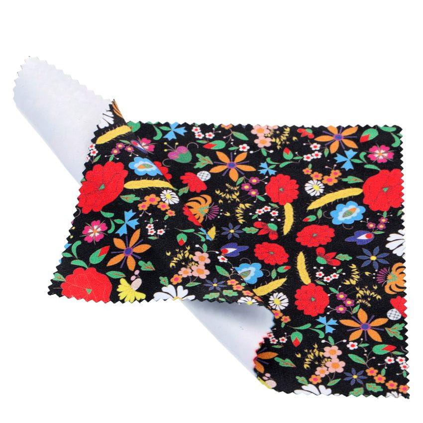 Chusteczka do okularów z mikrofibry z wzorem haftu kociewskiego. Pomocna dla wszystkich posiadaczy okularów, smartfonów, tabletów, notebooków i ekranów LCD. Bardzo przydatna nie tylko w domu, ale również w biurze i szkole. Piękny, niezwykle barwny wzór hafu kociewskiego. Cena dotyczy jednej sztuki chusteczki.
