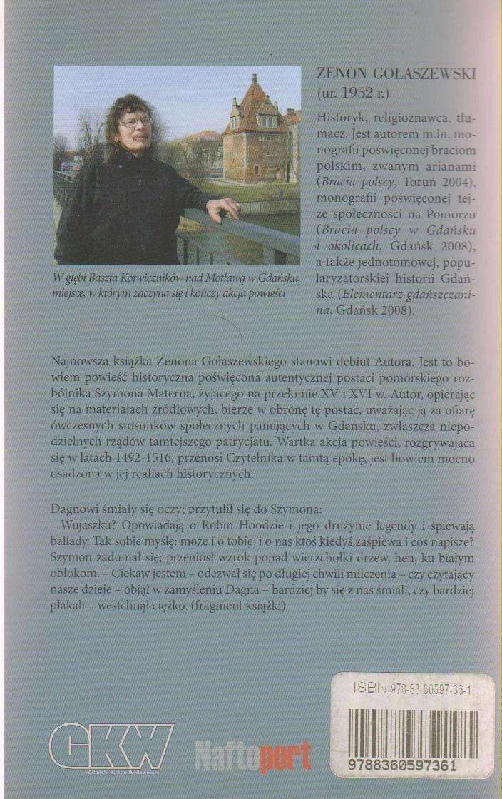 Powieść historyczna, poświęcona autentycznej postaci pomorskiego rozbójnika Szymona Materna, żyjącego na przełomie XV i XVI wieku. Autor, opierając się na materiałach źródłowych, bierze w obronę tę postać, uważając ją za ofiarę ówczesnych stosunków społecznych panujących w Gdańsku, zwłaszcza niepodzielnych rządów tamtejszego patrycjatu. Wartka akcja powieści, rozgrywająca się w latach 1492-1516, przenosi Czytelnika w tamtą epokę, jest bowiem mocno osadzona w jej realiach historycznych.