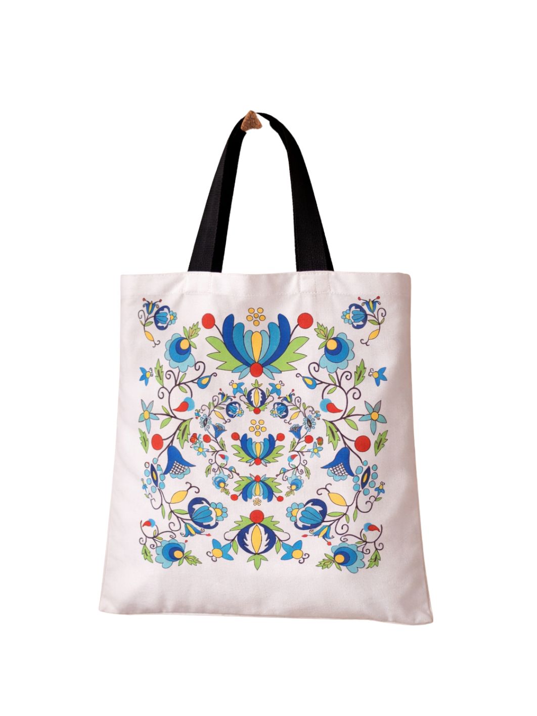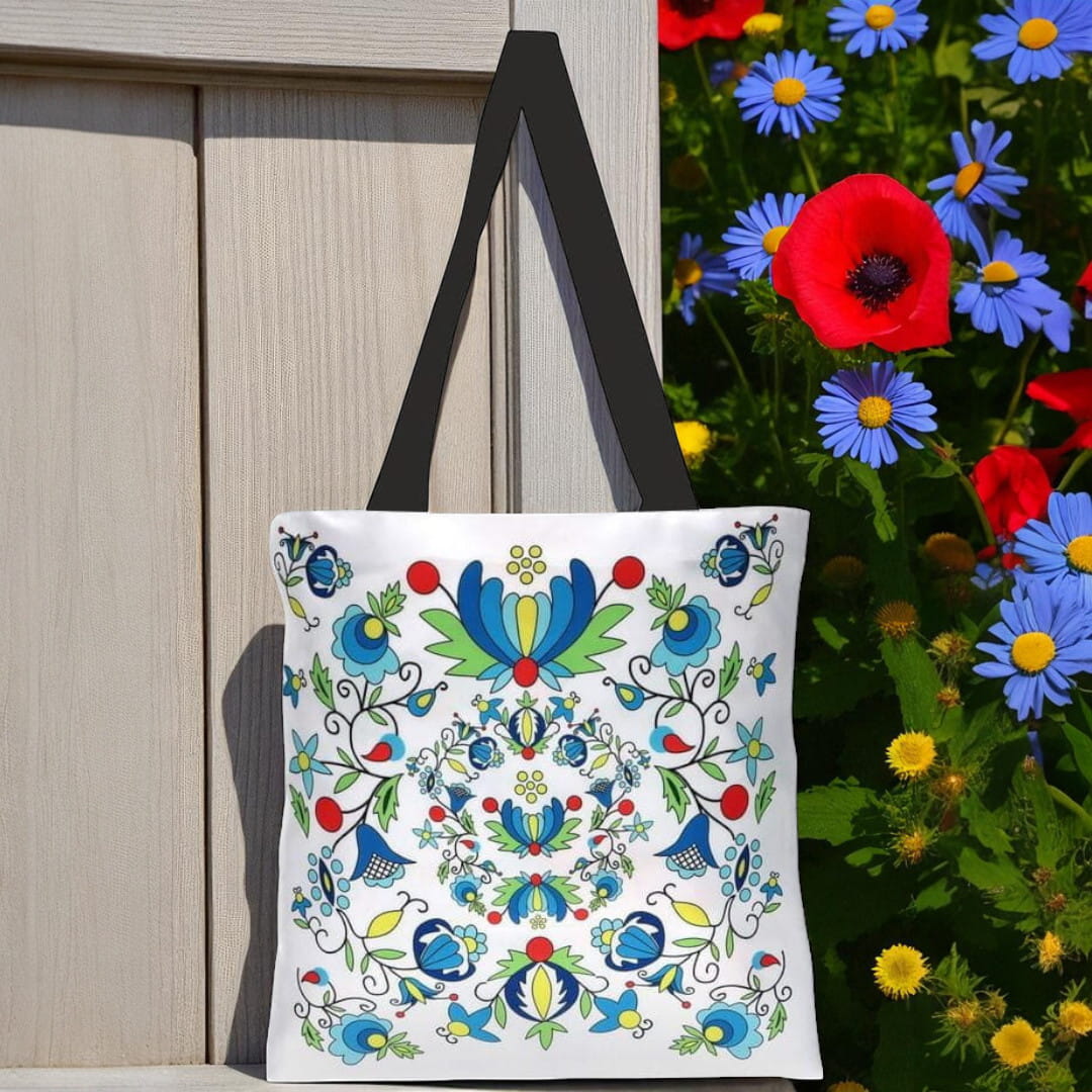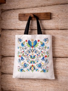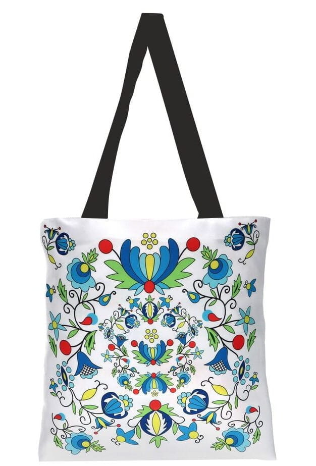 Torba kaszubska bardzo dobrej jakości. Nadruk na torbie inspirowany ludowymi motywami haftu kaszubskiego szkoły żukowskiej. Długie ucho. Torba wykonana jest z wysokogatunkowej tkaniny poliestrowej o gramaturze 160 g. Nadruk wykonany metodą sublimacji dzięki czemu nasycenie kolorów pozostaje niezmienne. Torba jest niezwykle wytrzymała dzięki wszytej podszewce. Cena dotyczy jednej sztuki.