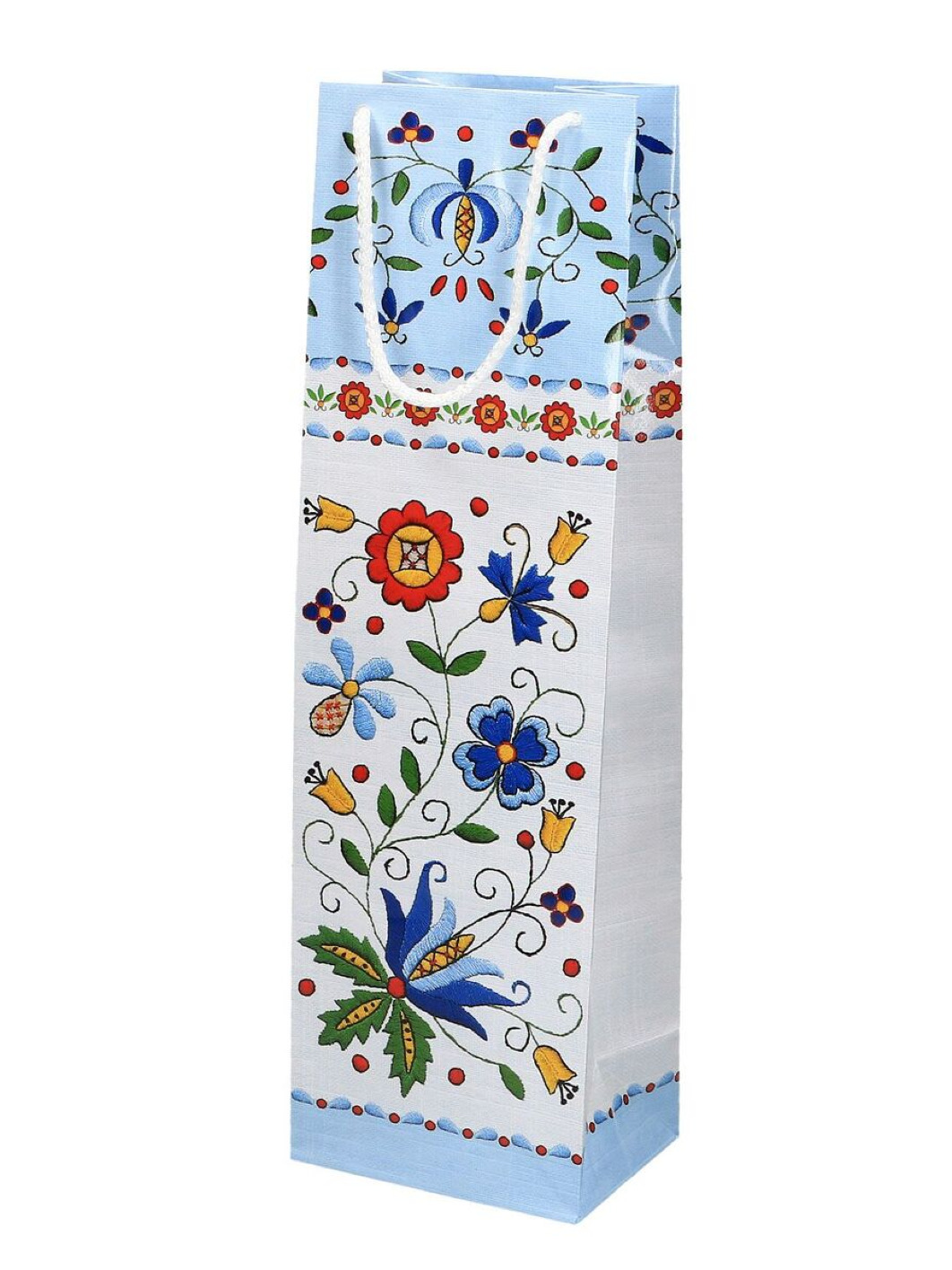 Ozdobna torba prezentowa inspirowana wzorami haftu kaszubskiego