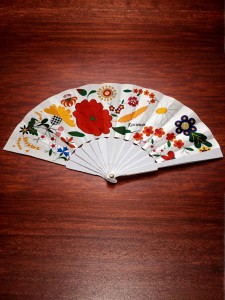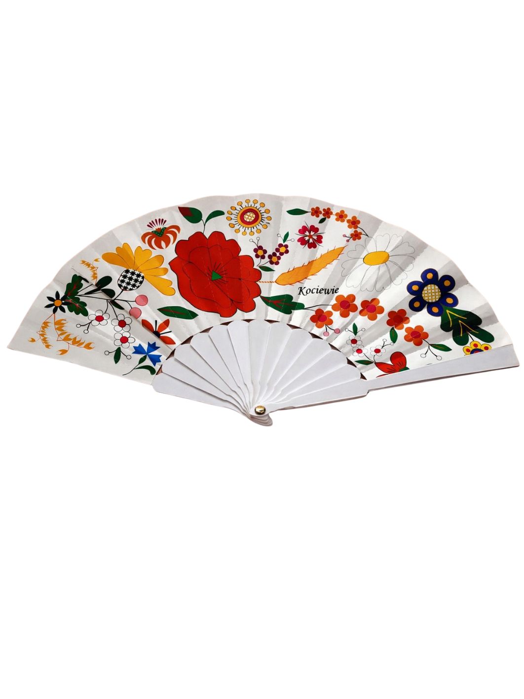 Wachlarz w pięknych wzorach haftu kociewskiego zwanego haftem ziemi ze względu na dużą ilość motywów zaczerpniętych z kociewskich pół i łąk. Wzór haftu znajduje się po jednej stronie wachlarza. Wachlarz kociewski to tradycyjny element kultury ludowej regionu Kociewia, który znajduje się w północnej Polsce. To obszar o bogatej historii i tradycjach, a jego kultura ludowa jest znana z różnorodnego rękodzieła, strojów ludowych i obrzędów.