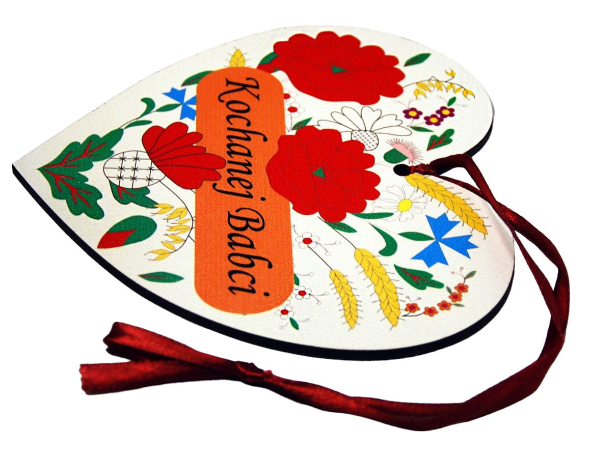 Zawieszka kociewska „Kochanej Babci” – serce pełne tradycji. Piękny i wzruszający upominek dla babci – zawieszka w kształcie serca z tradycyjnym kociewskim wzorem. Wykonana na drewnianym materiale i ozdobiona nadrukiem UV, łączy w sobie folkowy charakter oraz emocjonalne przesłanie, idealne na wyjątkową okazję.