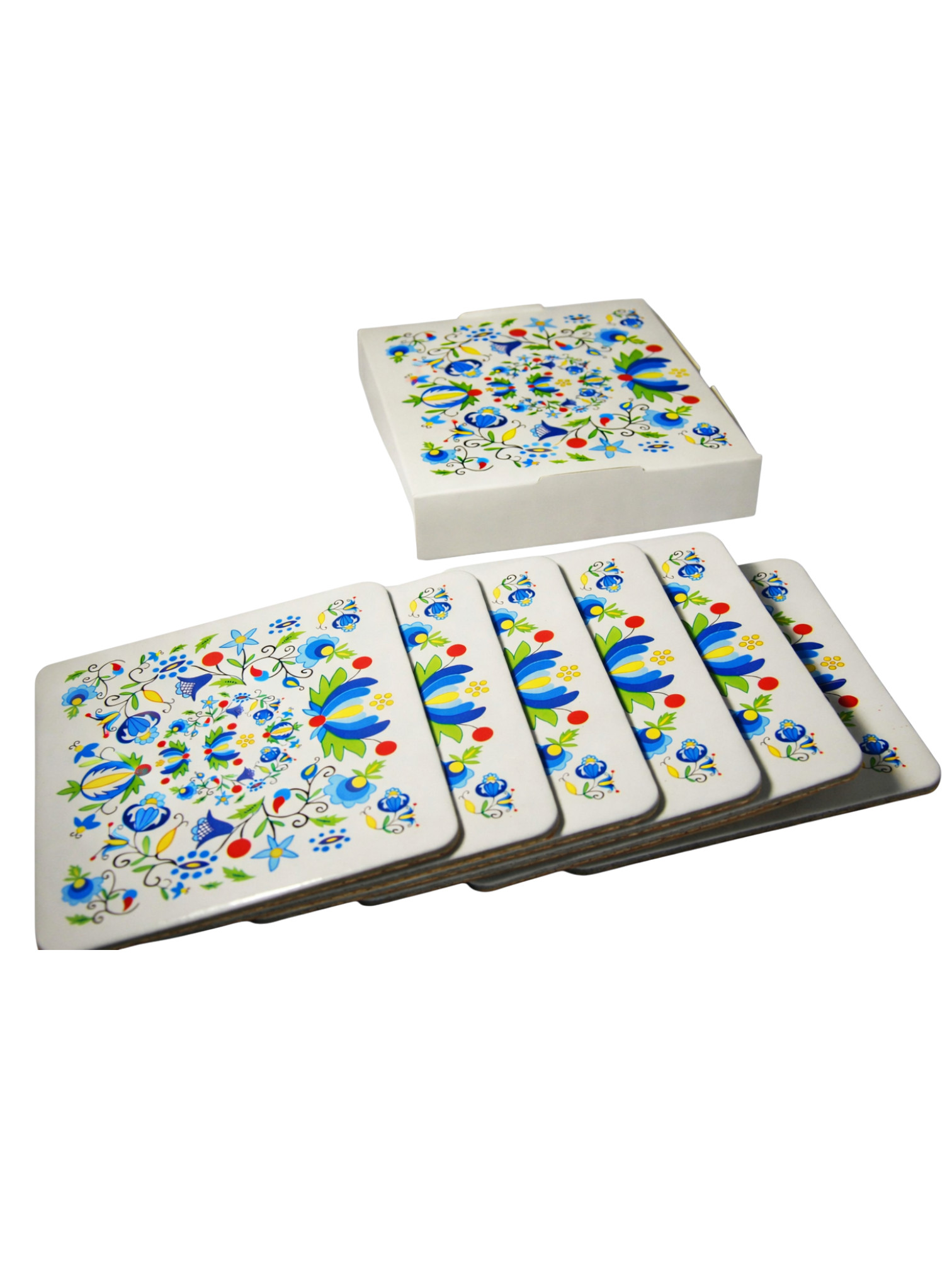 Zestaw podkładek korkowych - haft kaszubski (szkoła żukowska) - 6 szt.